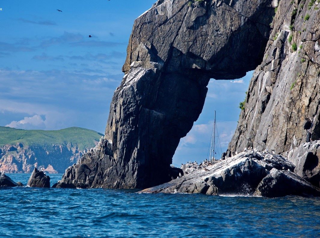 Большой тур, включающий в себя катерную поездку по 6 островам архипелага императрицы Евгении: Рикорда, Кротова, Моисеева, Желтухина, Циволько, Сергеева и арка острова Карамзина. Эти острова труднодоступны, необитаемы и находятся достаточно далеко от оживленных мест отдыха, а потому могут стать отличным местом для уединения и поиска гармонии с природой. Она здесь великолепна.